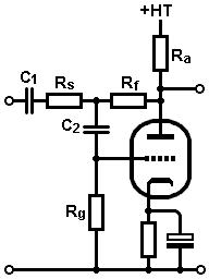 The grid-leak Rg can be the usual 1Meg, and C2 must be included to block the DC anode voltage from the grid (so it must be a high-voltage capacitor).